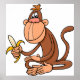 Cute Cartoon Monkey with Banana Funny Animal Poster