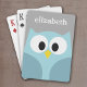 Cute Cartoon Owl - Blue and Grey Custom Name Playing Cards