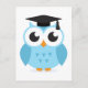 Custom graduation postcard featuring a cute, blue owl graduate with a mortarboard hat. Cute and fun design. Other products with this design are also available. For custom requests or help with customising please use the store contact link above.