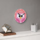 Cute Cartoon Owl in Pink and Coral Round Clock