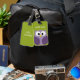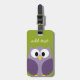 Cute Cartoon Owl Purple and Pistachio Custom Name Luggage Tag