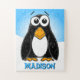 Cute Cartoon Penguin Customisable Name Kids Jigsaw Puzzle