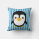 Cute Cartoon Penguin Design Blue Stripes Pattern Cushion