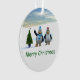 Cute Cartoon Penguin Pair with Tree Ornament