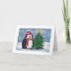 An adorable hand drawn penguin admiring his newly decorated Christmas Tree. Penguin is all bundled up in a red scarf and hat, and is on a pretty blue background with snowflakes. A cute way to wish someone Merry Christmas and Happy New Year!