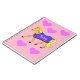 Cute cartoon palomino pony wearing a blue rug with red edging. Image can easily be personalized by editing the template text to change the name/remove it or change it to a message of your own choice. Notebook background is pale pink with brighter pink hearts. Cute present for any horse lover.
