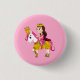 Button with an illustration of a happy princess wearing a pink dress riding a pony, nice present for little girls and a great decoration for a nursery or girl's bedroom