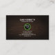 A simple wood grain design with a mild vignette to accentuate the centre piece which is a motif of a cute puppy. A striking green stripe runs across the face of the card, intercepting the motif at the middle. At the top lies your name with your job title and contact details southwards near the base.