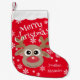 Cute Cartoon Reindeer White Snowflakes Red Name Small Christmas Stocking