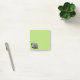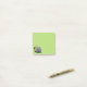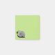 Cute snail character kids post-it notes with an ink drawing of a cartoon snail character with a smile, spiral eyes and white dots all over its body and shell over customisable light green background.