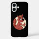 iPhone 16 Case with an illustration of a cute red squirrel holding a peanuts, with a beige circle on a brown background, a cute animal design for kids by Maxi Harmony