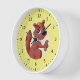 Clock with an illustration of a cute red squirrel holding a peanuts, with a beige circle on a brown background, a cute animal design for kids by Maxi Harmony