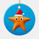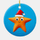 Cute Cartoon Starfish Santa Hat Ceramic Ornament
