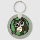 Cute cartoon style Owl round basic button key chain. Background colour can be customised.