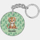Cute Cartoon Tiger on Tropical Leaves Key Ring
