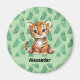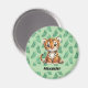 Cute Cartoon Tiger on Tropical Leaves Magnet