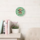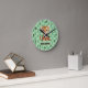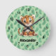 Cute Cartoon Tiger on Tropical Leaves Round Clock
