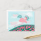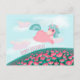 Pink and mint cartoon unicorn pastel colours illustration. Hopping over the meadow and playing with clouds little unicorn is full of positive energy. This cute design can make little girls feel happy and joy. Personalised inside text.