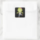 This item features Destei's cartoon illustration of a creepy zombie. Part of the zombie's brain is visible and he is walking arms up high. The pants are blue and the shirt is in beige colour with a picture of a skull.
