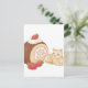 A cute illustration of a cat and a piece of a strawberry roll cake