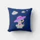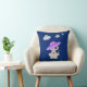 Throw pillow with cute cat and flying saucers only on the front side on royal blue colour background.