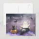 Cute Cat and Ghost Halloween Postcard