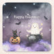 Cute Cat and Ghost Halloween Square Paper Coaster