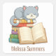 Cute Cat Book Stack Custom Name Bookplate Square Sticker
