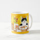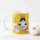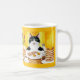 This painting is called "Sunny Side Up." You can customise the style and colour of this mug, as well as the background colour if you'd like. It's shown here on deep yellow, but it would also look great on other colours. This image is available on other products in my Zazzle store.
