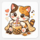 Cute Cat Drinking Bubble Tea | Kawaii Cat Design Square Sticker