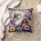 Cute Cat Floral Garden Custom Monogram Cushion