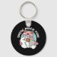 Cute Cat in Snow Gear with Snowman Art Key Ring