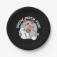 Cute Cat in Snow Gear with Snowman Art Paper Plate