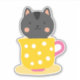 Cute cat animal cartoon in teacup. Pastel coloured children's design for a childrens gift or childrens decor. Mint green background on some products. Cute animal theme. Adorable kitty.