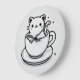 Add charm and personality to your space with this adorable cat in a teacup wall clock. Featuring a sweet, hand-drawn style kitten nestled inside a cosy cup, this black-and-white illustration blends playful whimsy with clean minimalist design.