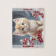 Cute Cat Kitten Winter Christmas Custom Name Jigsaw Puzzle
