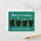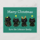 These cute cat Christmas postcards features a row of black kittens wrapped in Xmas lights. Customise this pretty green holiday postcard for a friend or family member who loves cute kitties and festive fun with their felines.
