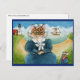 Cute Cat, Mouse, lighthouse, ship, beach postcard