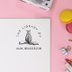 This cute cat sitting on the book library book stamp is perfect for cat lovers who know how mischievous these creatures can be! The lovely illustration of a cat showing off its backside, sitting on the book, is in the middle. The ´´the library of´´ text is curving gracefully on the outside, in a modern typography. And your custom name is below. Customize it via the ´´Personalize´´ button.