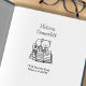 Cute Cat on top of A Book Stack Address Rubber Stamp