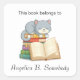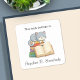 Cute Cat on top of a Book Stack - Bookplate Square Sticker