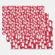 Cute Cat Red and White Festive Wrapping Paper Sheet