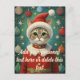 Vintage nostalgia postard for christmas with a cat wearing santa claus outfit. Personalise this Holiday Card by adding your own text easily on the sales page template.