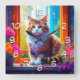 Cute Cat Sitting in City Window Ai Art Square Wall Clock