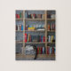 Cute cat sleeping on bookshelf library books jigsaw puzzle