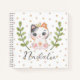 A cute child or baby custom notebook with a Gender neutral soft watercolor illustration of a cat or kitten with a crown and leaves on a dotted patterned background.