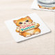 Cute Cat Stay Positive Artwork Square Paper Coaster