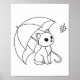 Cute Cat Umbrella Leaf Coloring Page Poster