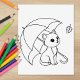 Cute Cat under Umbrella Colouring Page Rubber Stamp