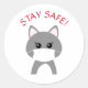 CUTE CAT WEARING MASK STAY SAFE Round Sticker